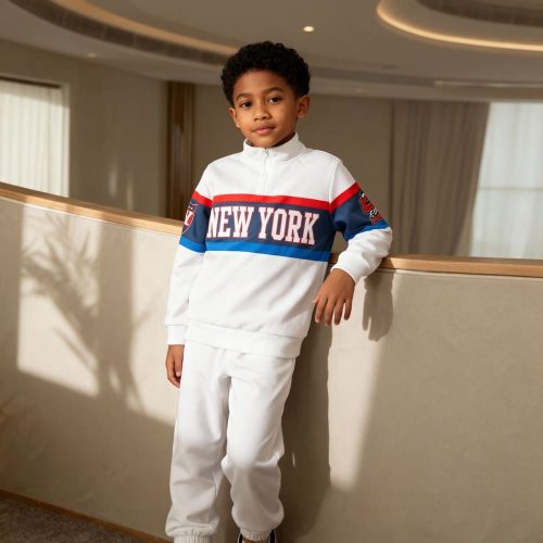 Red kids’ sweatshirt with “DRAGON” graphic and black contrast sleeves, paired with matching red jogger pants — bold, sporty outfit.Red kids’ sweatshirt with “DRAGON” graphic and black contrast sleeves, paired with matching red jogger pants — bold, sporty outfit.