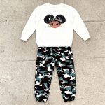 White long-sleeve top with cute Afro girl graphic + matching camo joggers. Sweet, bold, and perfect for confident girls.
