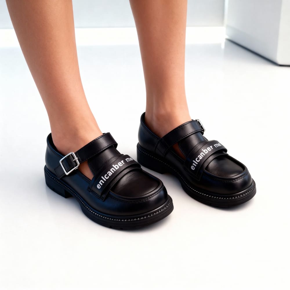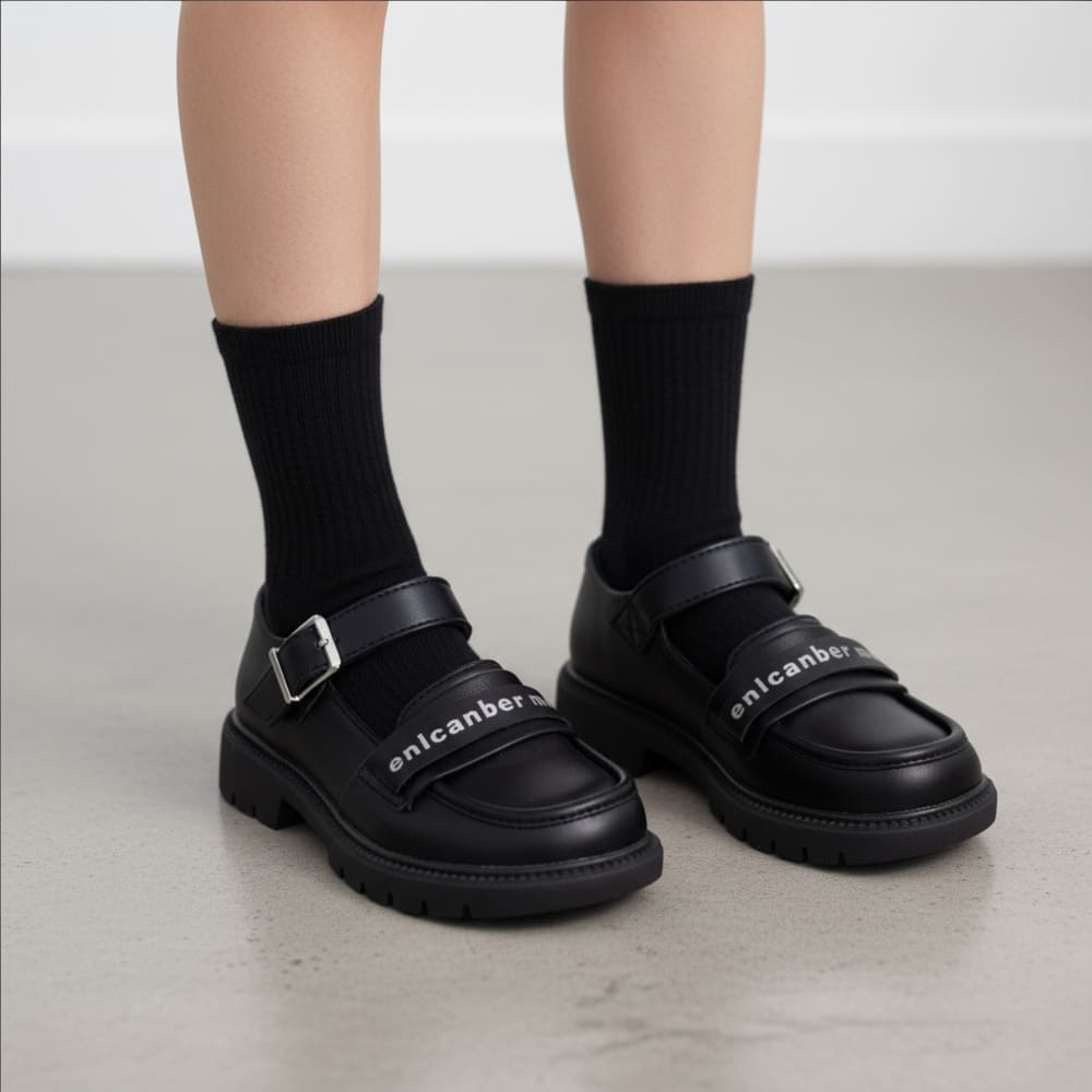 Black Velcro Strap Mary Jane Shoes