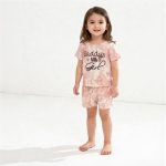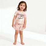 Girl wearing pink tie-dye “Daddy’s little Girl” top and matching shorts
