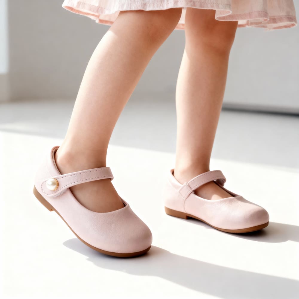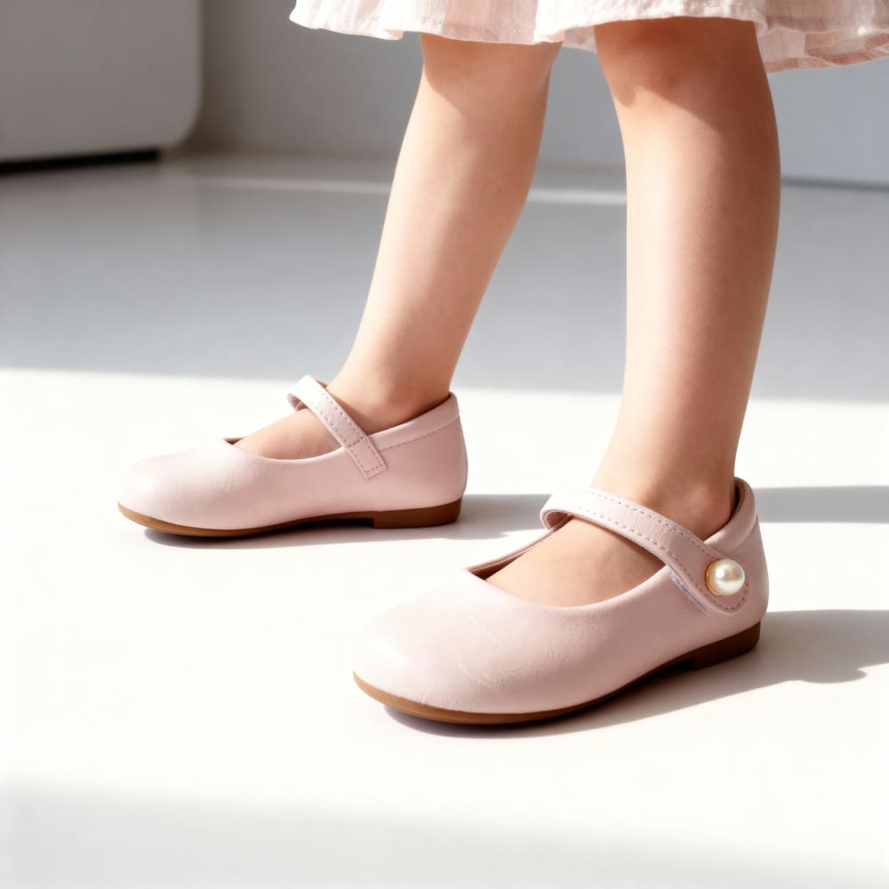 Girl’s dusty pink Mary Jane shoes with pearl accent
