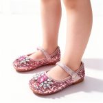 Girl’s pink glitter Mary Jane shoes with pink gemstone flower
