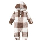 Home » Shop » Cozy Brown & White Plaid Hooded Baby Onesie – Soft Fleece, Warm & Adorable for Winter